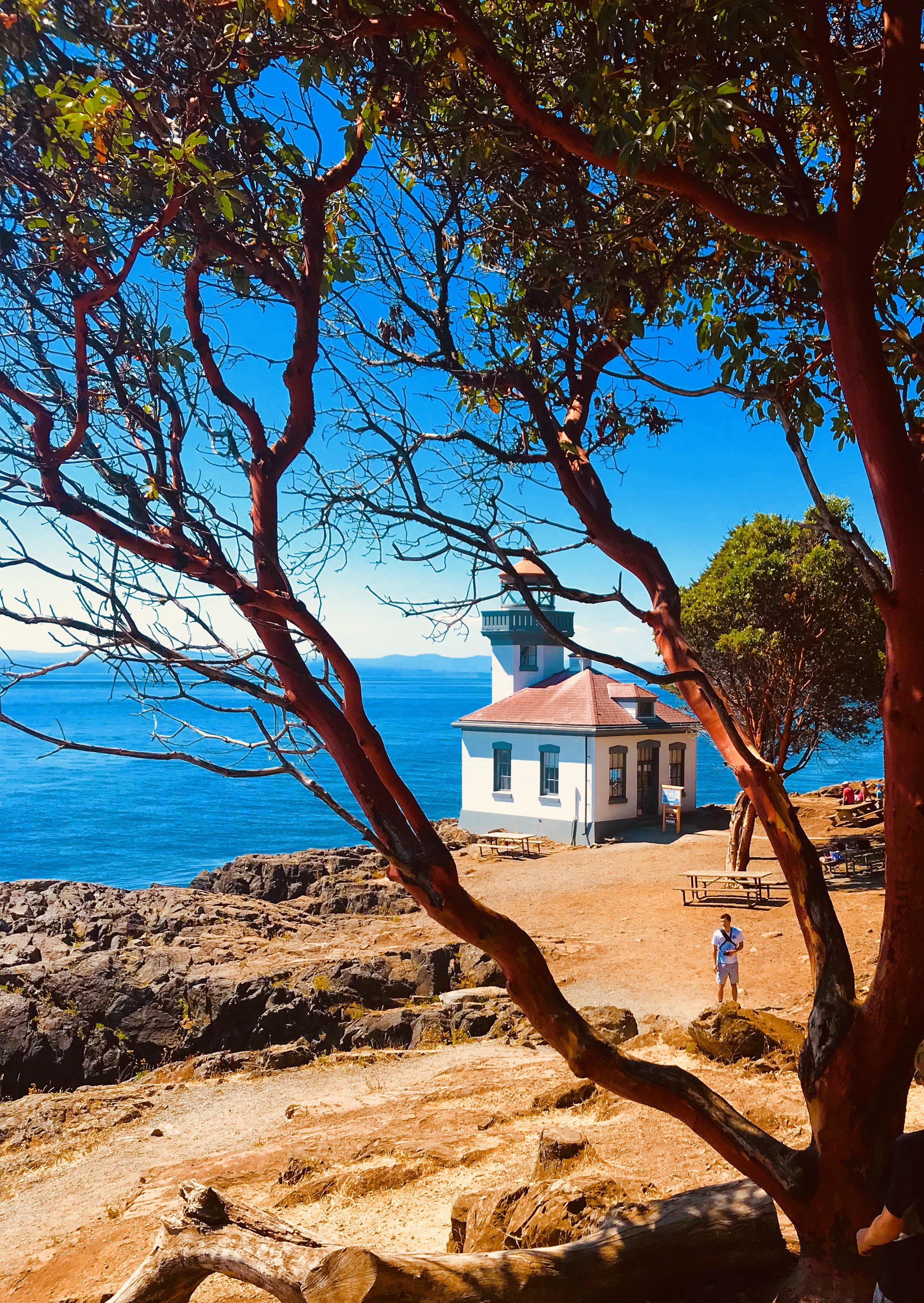 Lime Kiln lighthouse amidst the twisted Madrona trees.
